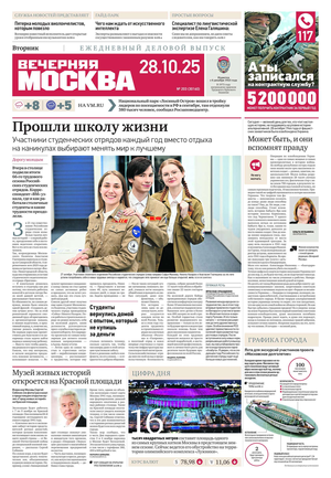 «Вечерняя Москва» — ежедневная российская вечерняя газета, старейшее из вечерних изданий в России, учрежденное в 1923 году. Выходит пять дней в неделю, кроме субботы и воскресенья. Отличается тем, что рассказывает о событиях еще не завершившегося дня. Оперативно освещает хронику и особенности жизни Москвы, охватывает все слои общества и большинство профессиональных и возрастных групп читателей.Издание представлено тремя выпусками – утренним ежедневным, вечерним (выходит три раза в неделю), еженедельным (выходит по четвергам).