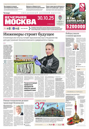 «Вечерняя Москва» — ежедневная российская вечерняя газета, старейшее из вечерних изданий в России, учрежденное в 1923 году. Выходит пять дней в неделю, кроме субботы и воскресенья. Отличается тем, что рассказывает о событиях еще не завершившегося дня. Оперативно освещает хронику и особенности жизни Москвы, охватывает все слои общества и большинство профессиональных и возрастных групп читателей.Издание представлено тремя выпусками – утренним ежедневным, вечерним (выходит три раза в неделю), еженедельным (выходит по четвергам).