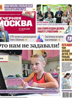 Еженедельный выпуск «Вечерней Москвы» — это значимые события недели, афиша города, новости из сферы отдыха и развлечений, телепрограмма с анонсами и комментариями, авторские колонки журналистов и авторитетные мнения экспертов, детская страничка, специальная рубрика «Золушка», интересные репортажи о необычных судьбах московских жителей, постоянные конкурсы и викторины.