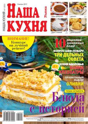 Основа каждого номера — проверенные рецепты блюд с фотографиями. С помощью «Нашей кухни» можно запросто составить меню на каждый день и для праздничного стола. С журналом «Наша кухня» процесс приготовления блюд превратится в удовольствие!