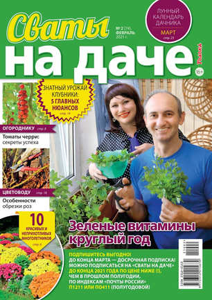 В журнале «Сваты на даче» вы узнаете, как проще, быстрее и без неимоверных усилий добиться высоких урожаев и обустроить дачный быт. В одном журнале 300 подсказок: самые действенные и доступные методы посева и посадки садово-огородных культур, ухода за ними, борьбы с вредителями и болезнями.