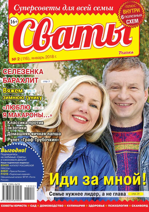 «Сват плохого не посоветует», — говорят в народе. В каждом номере журнала «Сваты» вы найдете: проверенные советы от читателей, экспертов, юристов, медиков, психологов, кулинарные рецепты, секреты здоровья, помощь в воспитании детей разного возраста, песни, байки, анекдоты. И все это в ярком, красочном оформлении.