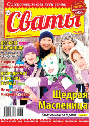 «Сват плохого не посоветует», — говорят в народе. В каждом номере журнала «Сваты» вы найдете: проверенные советы от читателей, экспертов, юристов, медиков, психологов, кулинарные рецепты, секреты здоровья, помощь в воспитании детей разного возраста, песни, байки, анекдоты. И все это в ярком, красочном оформлении.