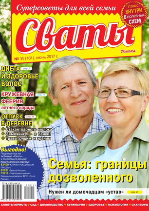 «Сват плохого не посоветует», — говорят в народе. В каждом номере журнала «Сваты» вы найдете: проверенные советы от читателей, экспертов, юристов, медиков, психологов, кулинарные рецепты, секреты здоровья, помощь в воспитании детей разного возраста, песни, байки, анекдоты. И все это в ярком, красочном оформлении.