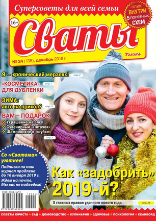 «Сват плохого не посоветует», — говорят в народе. В каждом номере журнала «Сваты» вы найдете: проверенные советы от читателей, экспертов, юристов, медиков, психологов, кулинарные рецепты, секреты здоровья, помощь в воспитании детей разного возраста, песни, байки, анекдоты. И все это в ярком, красочном оформлении.