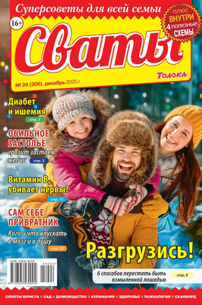 «Сват плохого не посоветует», — говорят в народе. В каждом номере журнала «Сваты» вы найдете: проверенные советы от читателей, экспертов, юристов, медиков, психологов, кулинарные рецепты, секреты здоровья, помощь в воспитании детей разного возраста, песни, байки, анекдоты. И все это в ярком, красочном оформлении.
