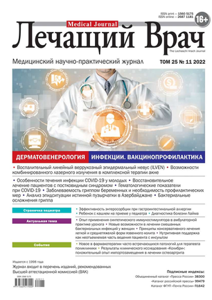 Научно-практический медицинский журнал, рекомендован Высшей Аттестационной Комиссией (ВАК).