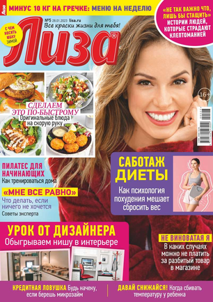Самый популярный в России еженедельный журнал для молодых женщин «Лиза» стал еще интереснее, еще привлекательнее для читательниц. Теперь больше знаменитостей на страницах любимого журнала! Фитнес со звездой и звездный макияж, уроки стиля и самые горячие новости из жизни кумиров. А еще — модный шопинг, актуальная мода, новинки косметики и великолепные идеи для дома. Романтические истории о настоящей любви и рассказы читательниц о разных жизненных ситуациях. Аспекты психологии, секреты успешных отношений с окружающими и искусство сохранения любви.