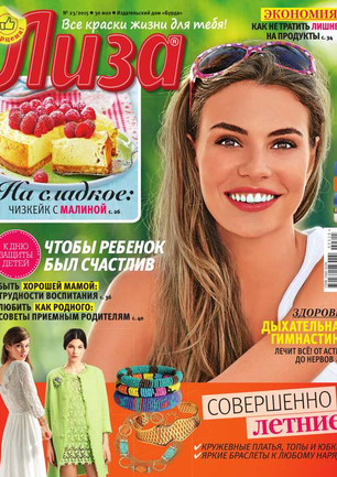 Самый популярный в России еженедельный журнал для молодых женщин «Лиза» стал еще интереснее, еще привлекательнее для читательниц. Теперь больше знаменитостей на страницах любимого журнала! Фитнес со звездой и звездный макияж, уроки стиля и самые горячие новости из жизни кумиров. А еще — модный шопинг, актуальная мода, новинки косметики и великолепные идеи для дома. Романтические истории о настоящей любви и рассказы читательниц о разных жизненных ситуациях. Аспекты психологии, секреты успешных отношений с окружающими и искусство сохранения любви.