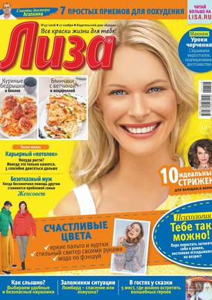 Самый популярный в России еженедельный журнал для молодых женщин «Лиза» стал еще интереснее, еще привлекательнее для читательниц. Теперь больше знаменитостей на страницах любимого журнала! Фитнес со звездой и звездный макияж, уроки стиля и самые горячие новости из жизни кумиров. А еще — модный шопинг, актуальная мода, новинки косметики и великолепные идеи для дома. Романтические истории о настоящей любви и рассказы читательниц о разных жизненных ситуациях. Аспекты психологии, секреты успешных отношений с окружающими и искусство сохранения любви.