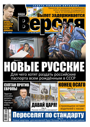 Общероссийская еженедельная газета «Наша Версия» сегодня - это один из ведущих еженедельников журналистских расследований – жесткий и информативный, остроумный и понятный.