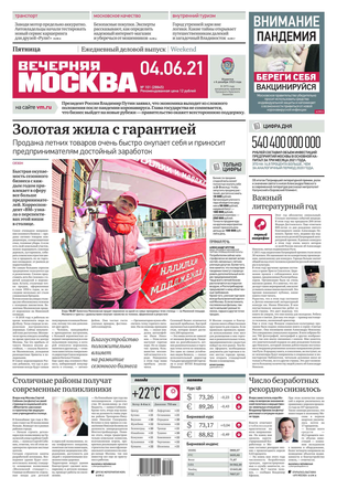 «Вечерняя Москва» — ежедневная российская вечерняя газета, старейшее из вечерних изданий в России, учрежденное в 1923 году. Выходит пять дней в неделю, кроме субботы и воскресенья. Отличается тем, что рассказывает о событиях еще не завершившегося дня. Оперативно освещает хронику и особенности жизни Москвы, охватывает все слои общества и большинство профессиональных и возрастных групп читателей.Издание представлено тремя выпусками – утренним ежедневным, вечерним (выходит три раза в неделю), еженедельным (выходит по четвергам).