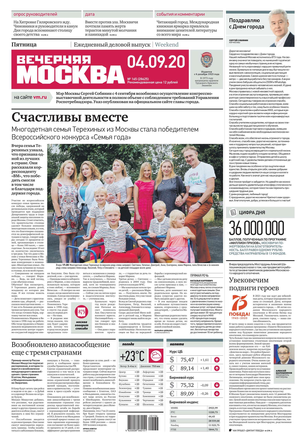 «Вечерняя Москва» — ежедневная российская вечерняя газета, старейшее из вечерних изданий в России, учрежденное в 1923 году. Выходит пять дней в неделю, кроме субботы и воскресенья. Отличается тем, что рассказывает о событиях еще не завершившегося дня. Оперативно освещает хронику и особенности жизни Москвы, охватывает все слои общества и большинство профессиональных и возрастных групп читателей.Издание представлено тремя выпусками – утренним ежедневным, вечерним (выходит три раза в неделю), еженедельным (выходит по четвергам).