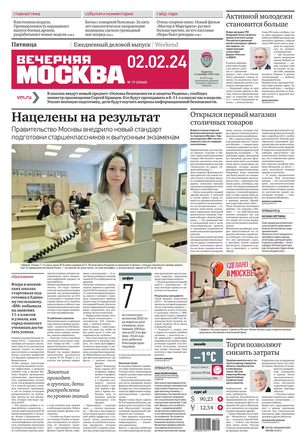 «Вечерняя Москва» — ежедневная российская вечерняя газета, старейшее из вечерних изданий в России, учрежденное в 1923 году. Выходит пять дней в неделю, кроме субботы и воскресенья. Отличается тем, что рассказывает о событиях еще не завершившегося дня. Оперативно освещает хронику и особенности жизни Москвы, охватывает все слои общества и большинство профессиональных и возрастных групп читателей.Издание представлено тремя выпусками – утренним ежедневным, вечерним (выходит три раза в неделю), еженедельным (выходит по четвергам).