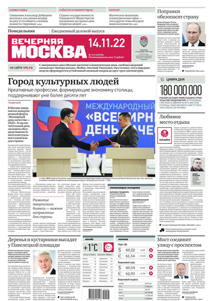 «Вечерняя Москва» — ежедневная российская вечерняя газета, старейшее из вечерних изданий в России, учрежденное в 1923 году. Выходит пять дней в неделю, кроме субботы и воскресенья. Отличается тем, что рассказывает о событиях еще не завершившегося дня. Оперативно освещает хронику и особенности жизни Москвы, охватывает все слои общества и большинство профессиональных и возрастных групп читателей.Издание представлено тремя выпусками – утренним ежедневным, вечерним (выходит три раза в неделю), еженедельным (выходит по четвергам).