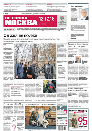 «Вечерняя Москва» — ежедневная российская вечерняя газета, старейшее из вечерних изданий в России, учрежденное в 1923 году. Выходит пять дней в неделю, кроме субботы и воскресенья. Отличается тем, что рассказывает о событиях еще не завершившегося дня. Оперативно освещает хронику и особенности жизни Москвы, охватывает все слои общества и большинство профессиональных и возрастных групп читателей.Издание представлено тремя выпусками – утренним ежедневным, вечерним (выходит три раза в неделю), еженедельным (выходит по четвергам).