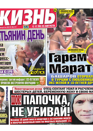 Еженедельная газета, предназначенная для семейного чтения. Основные рубрики: самые скандальные и интересные события прошедшей недели, политический комментарий Леонида Шахова, пикантные истории из звездной жизни, советы профессионального психолога, действенные рецепты здоровья, гороскоп, кроссворд, конкурсы, сканворды, розыгрыши билетов в кинотеатры и множество других призов. Приложения к газете «Жизнь»: «Телеэкран» - телепрограмма с подробными анонсами кино и сериалов, «Овертайм» - спортивное обозрение.