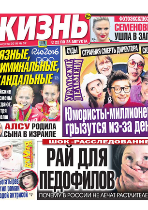 Еженедельная газета, предназначенная для семейного чтения. Основные рубрики: самые скандальные и интересные события прошедшей недели, политический комментарий Леонида Шахова, пикантные истории из звездной жизни, советы профессионального психолога, действенные рецепты здоровья, гороскоп, кроссворд, конкурсы, сканворды, розыгрыши билетов в кинотеатры и множество других призов. Приложения к газете «Жизнь»: «Телеэкран» - телепрограмма с подробными анонсами кино и сериалов, «Овертайм» - спортивное обозрение.